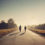 振り返らずに歩く影
